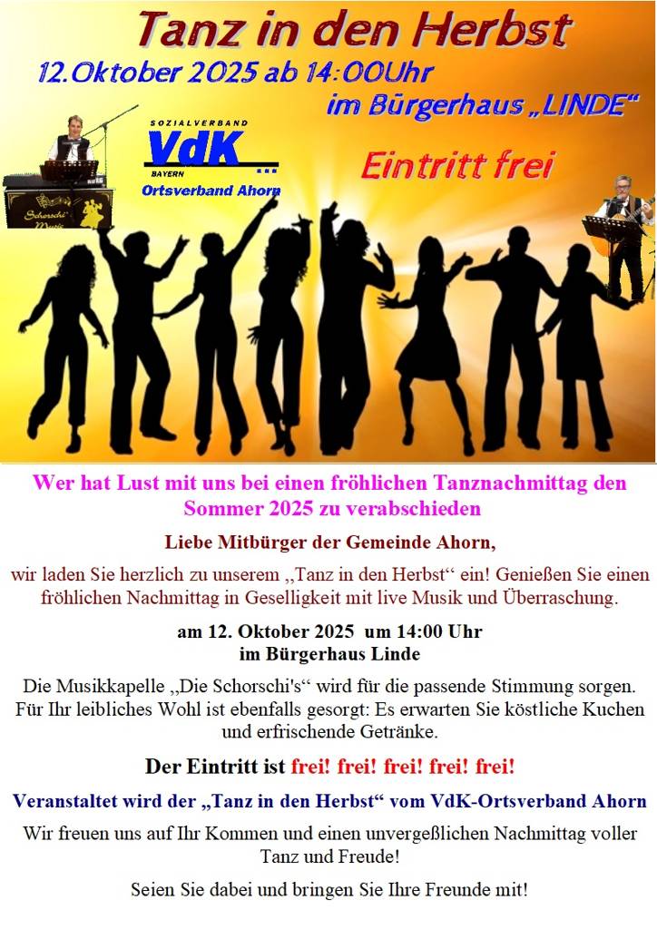 Der Vdk Ahorn lädt herzlich ein zum "Tanz in den Herbst".
