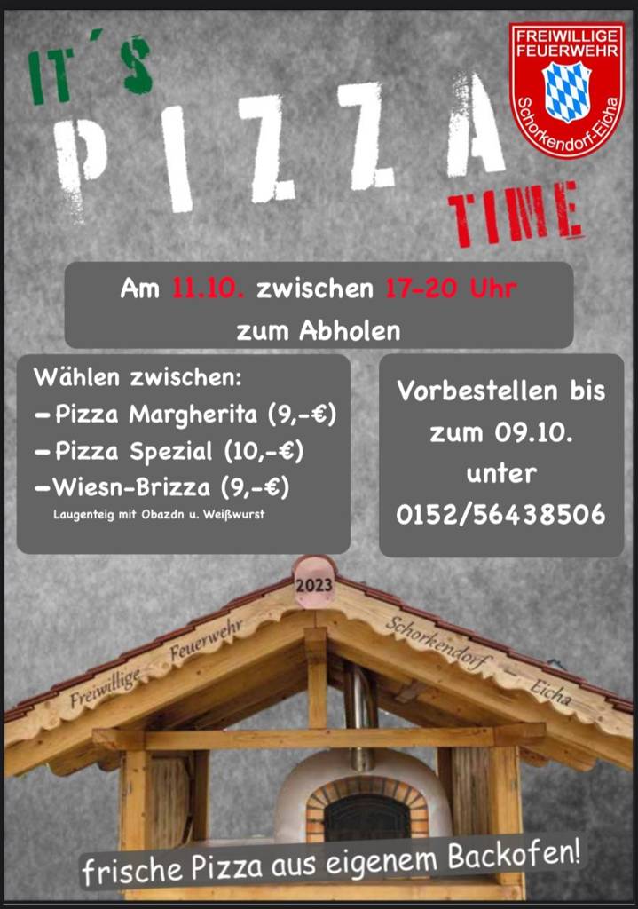 Unter dem Motto "It's Pizza Time" bietet die FFW Schorkendorf-Eicha frische Pizza aus dem Backofen zum Abholen an.