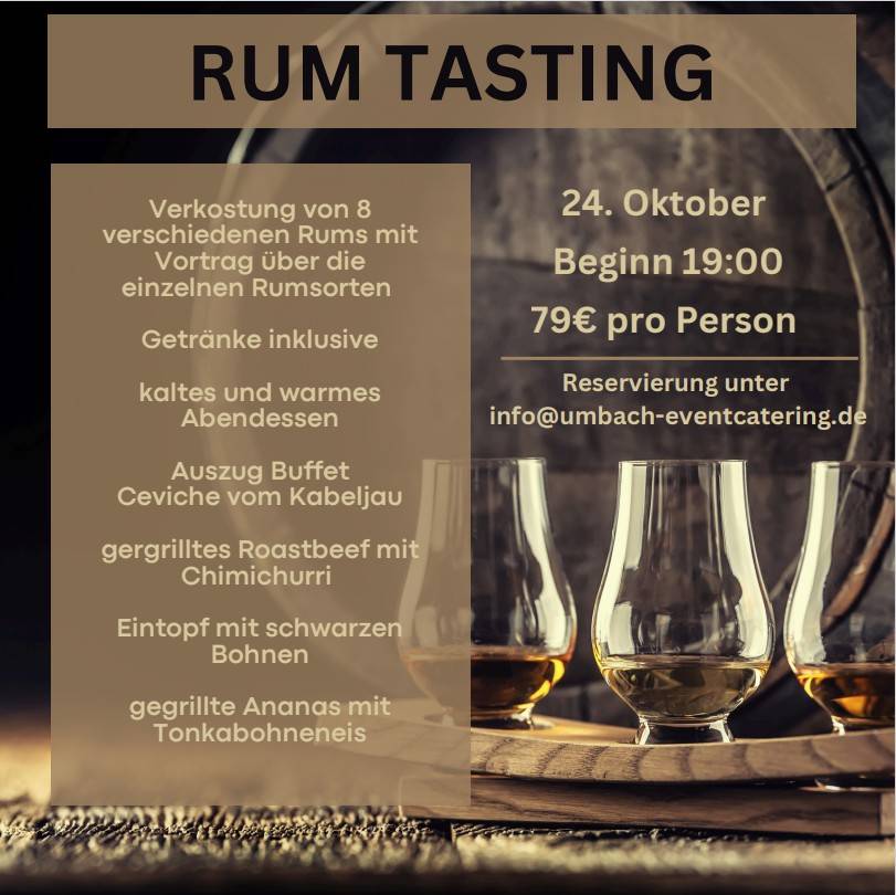 Ein unvergesslicher Abend mit 8 verschiedenen Rumsorten, spannenden Hintergrundgeschichten & Vortrag, sowie einem kulinarischen Begleitprogramm in Form eines kalten und warmen Buffet.