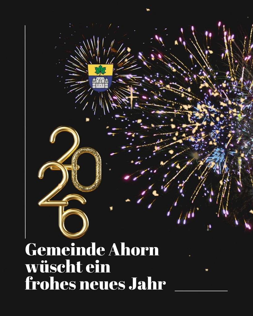 Die Gemeindeverwaltung Ahorn wünscht allen Bürgerinnen und Bürgern einen guten Rutsch und ein gesundes, glückliches neues Jahr 2026
