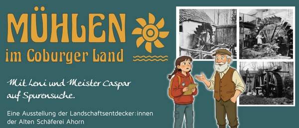 Herzliche Einladung zur Ausstellungseröffnung „Mühlen im Coburger Land. Mit Leni und Meister Caspar auf Spurensuche“ des Gerätemuseums Alte Schäferei in Ahorn.
