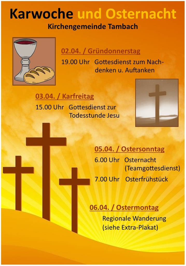 Die Evang.-Luth. Kirchengemeinde Tambach informiert über die Karwoche und Osternacht.