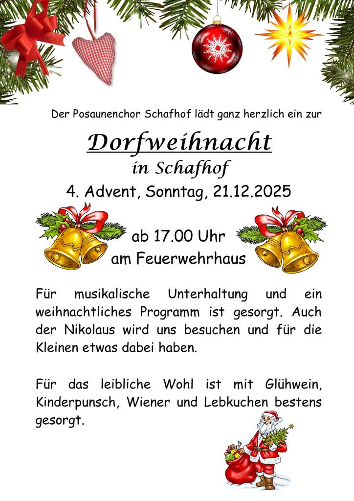 Der Posaunenchor Schafhof lädt herzlich ein zur traditionellen Dorfweihnacht in Schafhof.