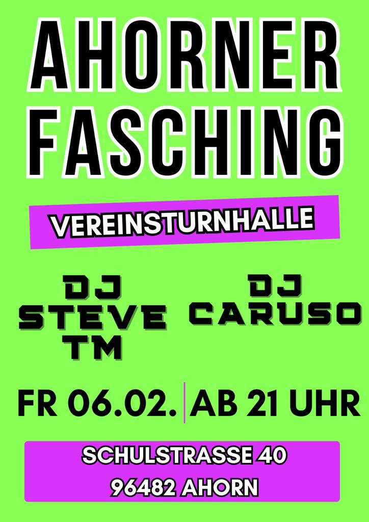 Anfang Februar heißt es wieder: rein ins Kostüm und ab auf die Tanzfläche! Ab 21 Uhr steigt bei der Spvg Ahorn eine unvergessliche Faschingsparty.