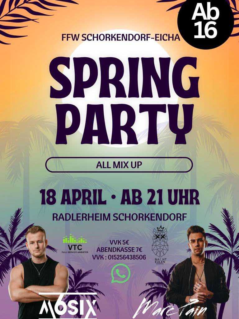 Herzliche Einladung der Freiwilligen Feuerwehr Schorkendorf-Eicha zur "Spring Party".