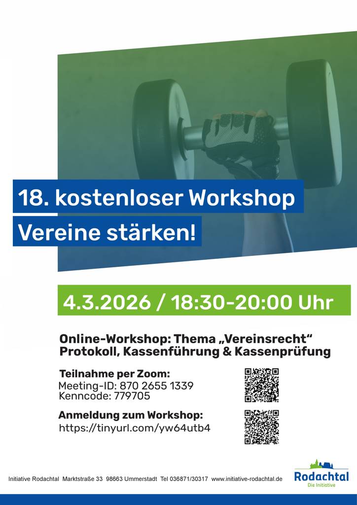 Die Initiative Rodachtal lädt zum 18. Workshop der Reihe „Vereine stärken“ ein – und diesmal geht es um ein besonders wichtiges Thema: Vereinsrecht.