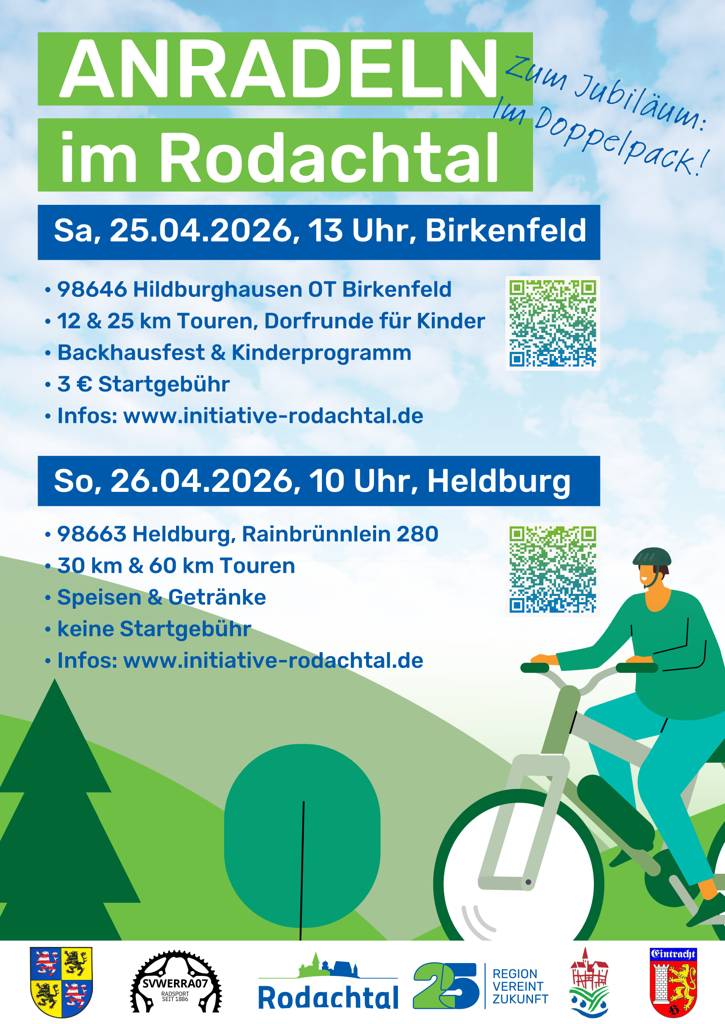 Am Samstag, 25. April, um 13 Uhr im Hildburghäuser Ortsteil Birkenfeld und am Sonntag, 26. April um 10 Uhr in Heldburg, können Radbegeisterte die Schönheit und Vielfalt des Rodachtals auf abwechslungsreichen Touren erleben.